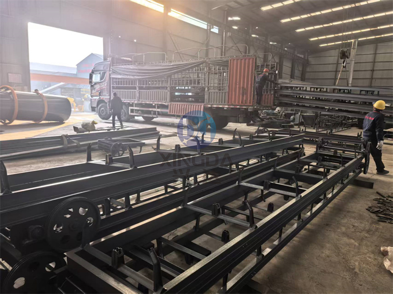车间单发一车有机肥皮带输送设备准备发往武冈:皮带输送机又称胶带输送机,输送带根据摩擦传动原理而运动,适用于输送易于掏取的粉状、粒状、小块状的低磨琢性物料及袋装物料,如煤、碎石、砂、水泥、化肥、粮食等。胶带输送机可在环境温度﹣20C至+40C范围内使用,被送物料温度小于60C。其机长及装配形式可根据用户要求确定,传动可用电滚筒,也可用带驱动架的驱动装置。