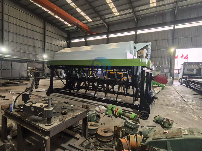 鞍山客户宽度为6米的有机肥设备液压槽式翻抛机打造完成,准备出货:有机肥设备液压槽式翻抛机是一种广泛应用于有机肥生产过程中的关键机械设备,主要用于对堆放在发酵槽内的有机物料(如畜禽粪便、秸秆、厨余垃圾等)进行定期翻抛和搅拌。该设备采用液压驱动系统作为核心动力源,通过液压油缸的伸缩运动带动翻抛装置(通常为带有齿条或铲板的翻抛刀)在发酵槽内进行往复式或旋转式运动,从而实现对物料的均匀翻动、疏松和透气,加速物料的发酵腐熟过程,提高有机肥的生产效率和质量。使用液压槽式翻抛机可提高生产效率,提升产品质量,节省人力成本,促进资源循环利用,是大规模有机肥发酵的优选设备。